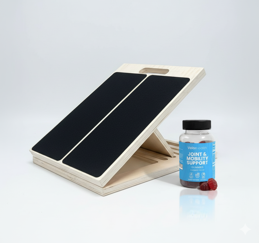 The Velor Board is an adjustable incline stretching device designed to target the areas that most affect your mobility - including your knees, ankles, feet, hips, and calves. By using different angles, it helps you stretch and strengthen the muscles and tendons that often cause stiffness, joint pain, and poor movement. Many users feel a noticeable difference in knee relief and flexibility within just a few sessions.